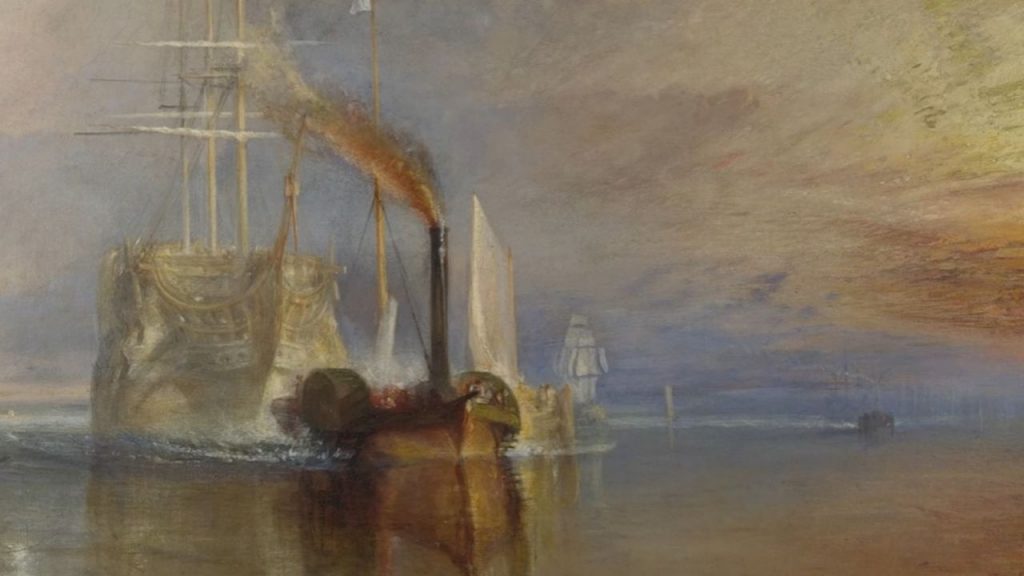 The tugboat, in contrast, is dark, grimy, and utilitarian. It’s not beautiful or majestic, but it’s effective. It represents the new world: practical, efficient, and unromantic. Its black smoke cuts across the golden sky like a scar, a visual reminder of the environmental and aesthetic costs of industrialization. Turner’s use of these contrasting elements highlights the tension between tradition and modernity, nostalgia and progress.